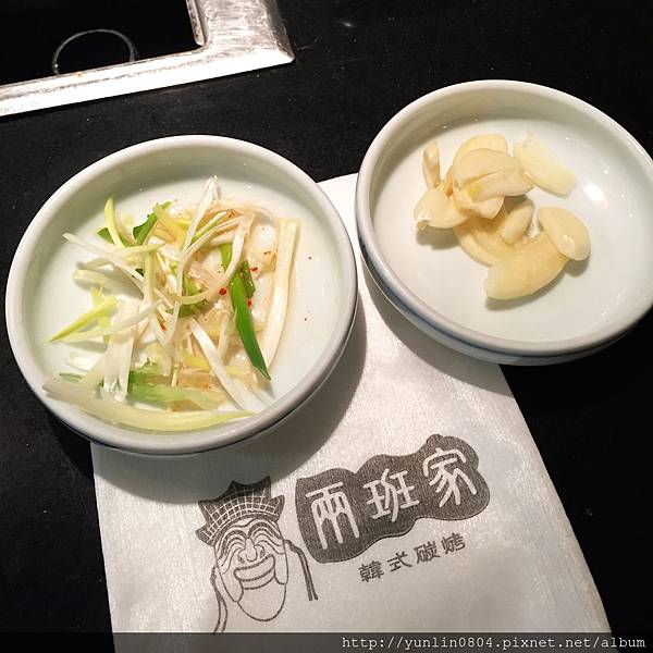 每個座位前方放著稍用蒜片與韓式醬料調味的蔥末,一樣沒甚麼使用到。