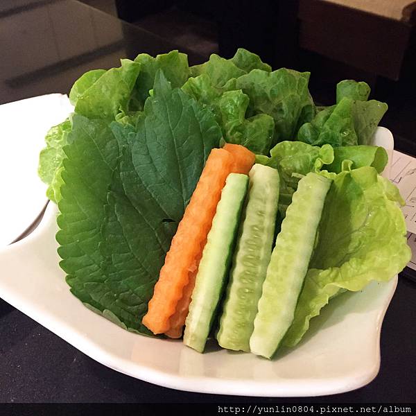可包肉片實用的「包肉生菜組合」,除了葉菜片、還可在裏頭加入小黃瓜棒與蘿蔔棒增加風味和口感。