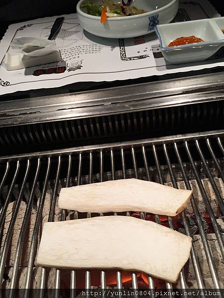 「包肉生菜組合」內的杏苞菇一上來就被服務生快速的放入爐上烤,根本來不及一起入鏡,當然也是好吃。