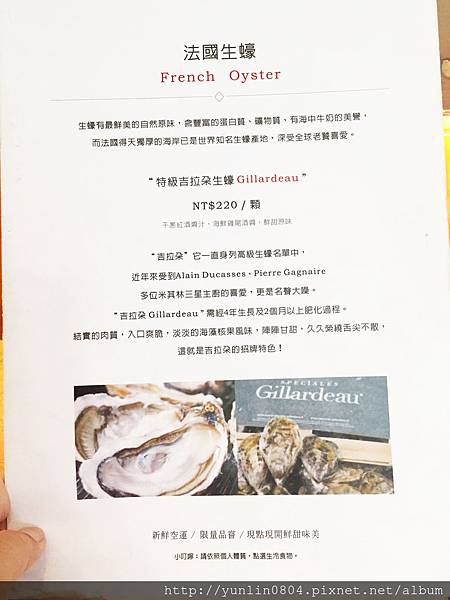 季節特別菜單,有「伊比利火腿 NT800/30g」、「法國特級吉拉朵生蠔 Gillardeau NT220/顆」、「歐洲空運白蘆筍」