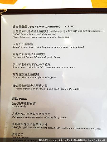 主餐NT1,680 & 甜點