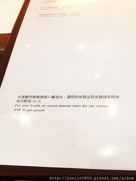 水資每位NT55,有氣泡與一般礦泉水可選擇。
