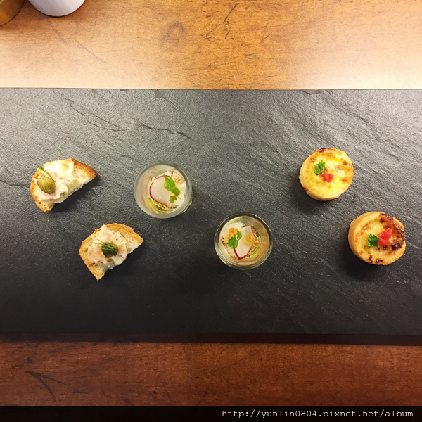一人三道的法式小品,建議由左至右、口味由淡至濃享用。