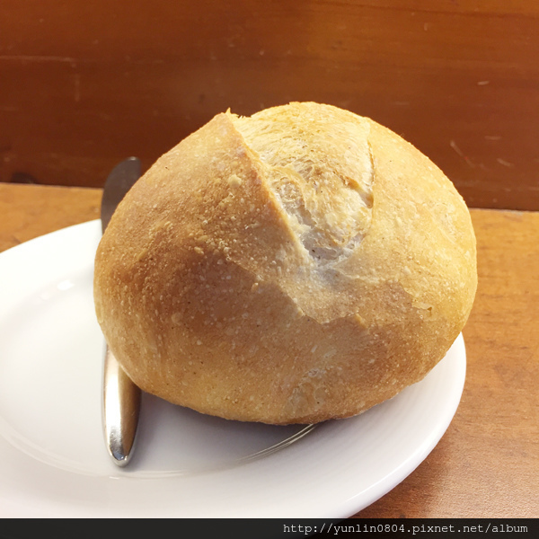 現烤手工酥脆的圓麵包,喜歡的話還可買回家、一顆NT75,雖然有美麗的玫瑰奶油花可沾取,我常常好吃到單獨吃就快嗑完整顆。